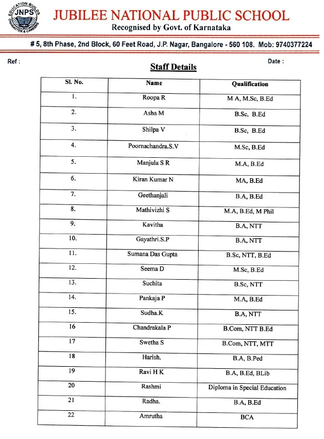 Staff details
